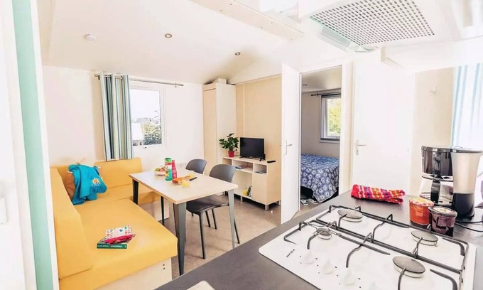 Flower Camping La Pointe du Talud * - Comfort mobile home BAHIA 27m² - 2 bedrooms + semi-covered terrace for 4 people is located in Kerroch. Flower Camping La Pointe du Talud * - Comfort mobile home BAHIA 27m² - 2 bedrooms + semi-covered terrace for 4 people provides accommodation, featuring Child Friendly, Parking, TV, among other amenities. This House features Child Friendly, Parking, TV, to make your stay a comfortable one.