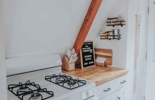 Step into the Boho Aframe paradise via our convenient smart lock and enter a world of bliss! The fully-equipped kitchen awaits your culinary adventures, stocked with everything you need from coffee to seasoning, ensuring your meals are as delightful as your stay. Need entertainment? Dive into our collection of books and games, listen to music on the bluetooth speaker, or stream your favorites on the Smart TV.