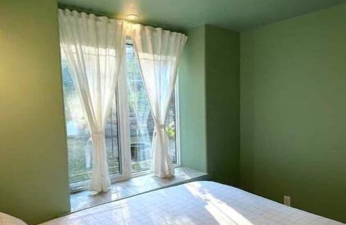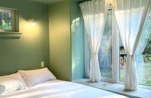 Upon entering, you'll find an open dining and living area with a wood-burning fireplace under a cathedral pine ceiling with beautiful natural light. The bedrooms feature super comfy beds with down pillows and cotton linens. The bay windows look out to the woodshed, roses, and a bountiful plum tree. The well-equipped cottage includes freshly ground coffee, a french press, tea, and pretty good olive oil.