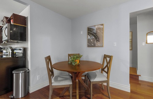 Our suite is a lower-level flat , nestled in a peaceful residential neighborhood. Everything is conveniently located on the same level, with just a few steps to enter the suite. Perfect for up to two guests!