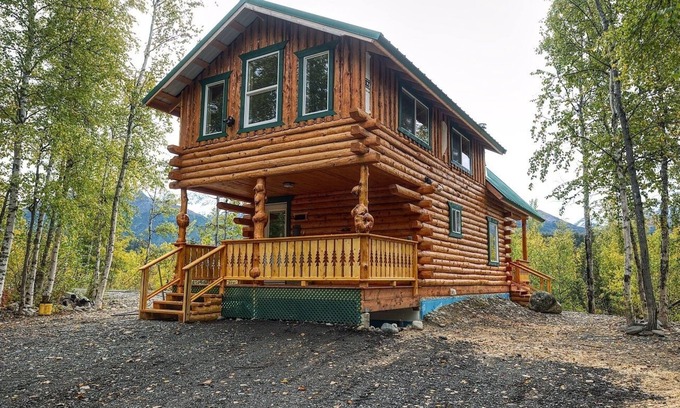 Relax with the whole family at this peaceful place to stay. Beautiful cabin nestled in the trees with gorgeous views of the mountains, 1/2 mile from Kings River access and 31 miles from the Matanuska Glacier Park. Our cabin is located just off the North Glenn Highway 62 miles from Anchorage, Alaska and 15 miles from Palmer, Alaska.
