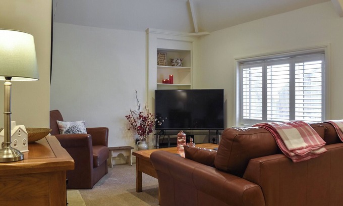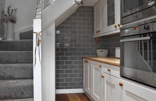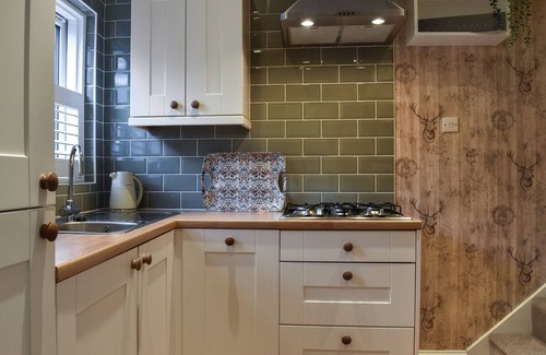 Shower Room: Cubicle Shower, Toilet. Gas central heating, gas, electricity, bed linen, towels and Wi-Fi included. On road parking. No smoking.. Step inside and be greeted by a meticulously presented interior. The ground floor reveals a well-equipped kitchen, while a comfortable double bedroom with ample storage space ensures a restful stay. A ground floor toilet also offers convenience on this level. Ascending to the first floor, an inviting living room with tasteful décor awaits. The open-plan layout integrates a dining area, creating an ideal setting for relaxation and gatherings. Sink into the plush leather suite in front of the gas fire and smart TV and enjoy a few moments of rest after a day’s exploration. A shower room completes the accommodation.
