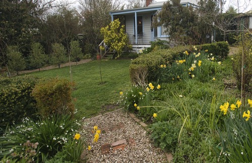 Moonlight Blue Miners' cottage is a delightful, open plan, cosy and charming space for a get-away weekend. Full of light and warmth, the cottage offers a queen size bed, a Ned Kelly fireplace, a sitting room, large screen TV and cooking facilities. Its bathroom has a corner spa with overhead rain-shower. It's set in a fairy tale garden setting with a back veranda straight on to the garden. There is also another cottage Sunset Red Mudbrick cottage nestled at the back of the property in which I live with my small dog Billie.