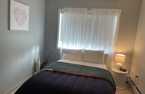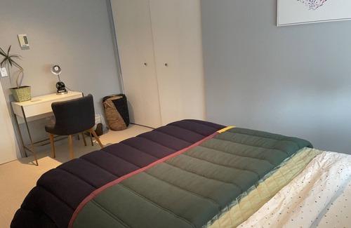 Enjoy your stay in a private comfy rooms in a stylish modern home with a beautiful and quiet neighbourhood. This space is perfect for working professionals, families or adventurers. There are 2 private rooms (a queen bed and a double bed) suitable for 4 guests with a sitting arrangement outside the rooms to watch TV, reading or play board games. The rooms are at a separate level from the other family rooms. Guest rooms have a shared washroom and a private deck just for guests. Each room has a designated workstation and high-speed internet. The rooms have their own heating control system to adjust the temperature according to guests' comfort and have door locks for security and privacy. The common areas (sometimes shared with a property manager) like a large living room with a gigantic windows view, kitchen, dining area and powder room are upstairs with two decks one at the front and the other at the back with a spectacular view of the old town, Lake and Auroras in the season.