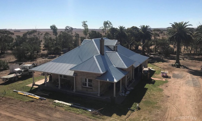 Stay in the southern wing of a grand old farmhouse with large rooms and high ceilings. There are two bedrooms, one king size and the other queen size. Step back in time with the old yellow terrazzo bathroom. A large dining room with lounge seating is the perfect place to kick back. Our uninterrupted views over farm land are stunning and the beautiful night skies can all be admired from one of the verandahs. Enjoy the peace and tranquility and sleep in complete silence as we are on a back road with no neighbours nearby.