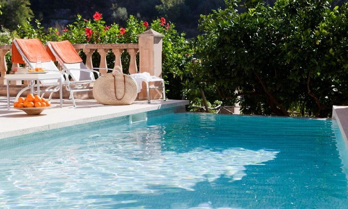 Fornalutx Petit Hotel is a small, charming hotel in the heart of the village of Fornalutx (560 inhabitants). Located on a quiet, traffic-free street, the hotel’s attractive original building was formerly a convent and once housed the village school. Today, the building features bright, spacious, airy accommodations, fully-equipped with all the modern comforts and facilities you need to enjoy a restful, relaxing holiday. There are just 18 rooms, guaranteeing guests peace and tranquility and a friendly familiar atmosphere. Each room has a private bathroom, satellite TV and a safety deposit box. Guests can enjoy a refreshing dip in the small outdoor swimming pool, which has spectacular views of the mountains and the valley.
