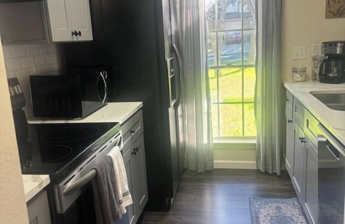 The fully equipped kitchen as everything you need to prepare a lovely meal or simply heat up take out. The fully remodeled kitchen offers new appliances, dishwasher, 4 burner range with ample granite countertops and eat in kitchen and breakbar with bar stools. Dining table seats 4 and the family chef will not miss out on the action with this open concept design.