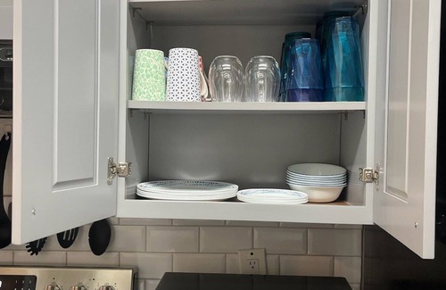 The home has 2 moderate size bedrooms with large windows looking into the small backyard. The rooms both offer queen sized beds, night tables, lamps with USB Charging and 110 outlets integrated into the lamp base. No problem finding extra outlets to charge your devices, you will easily be able to keep your devices charged or easily use them while resting on the comfortable gel mattress. The rooms also offer closets with hangers, an ironing board and other creature comforts like a small dressing table, work station in the primary bedroom.