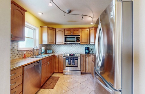 Whip up hearty meals in the updated kitchen, equipped with a full suite of stainless steel appliances, including a French-door refrigerator.