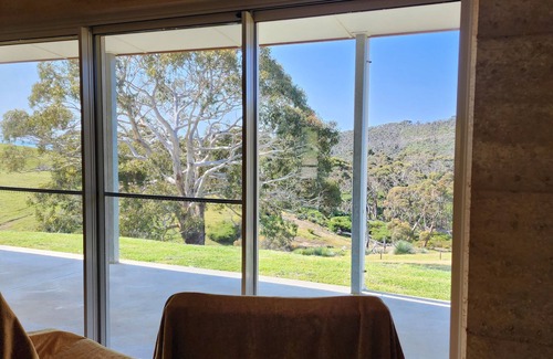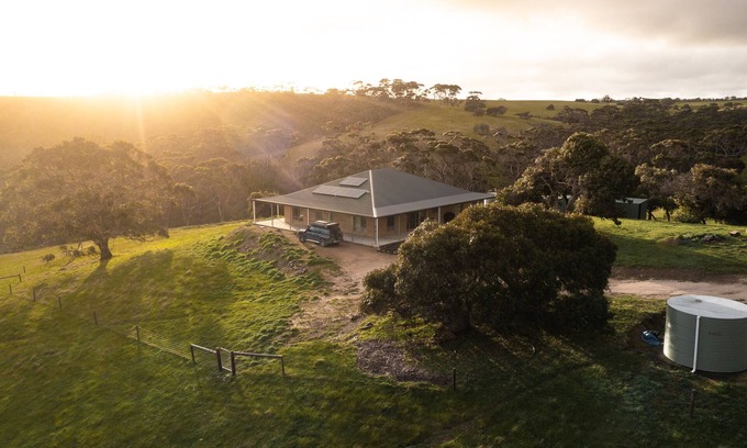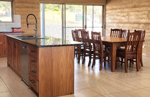 Off grid, rammed earth house set on 240 acres of rolling country. Beautiful views from the house-or you can take a peaceful walk along the creek & enjoy getting close to the local flora & wildlife.