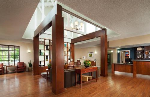 This Pleasanton hotel is located in the Hacienda Business Park, near Interstate 580. The hotel is located on 10.5 acres with an outdoor swimming pool, gardens and lagoons. Every room at the Four Points by Sheraton - Pleasanton is equipped with a 42-inch flat-screen TV. Free WiFi and free bottled water are also included. Deluxe rooms offer a balcony with garden views. Guests at the Pleasanton Four Points can use the gym or the jacuzzi. A business center is also available.
