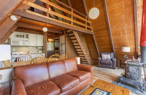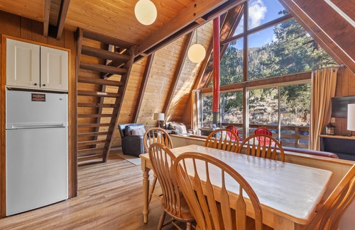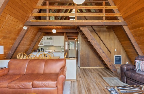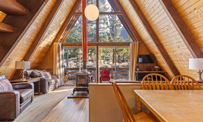 Experience an A-Frame-style cabin nestled at the foot of Carson Peak and offering breathtaking vistas of the Ansel Adams Wilderness.