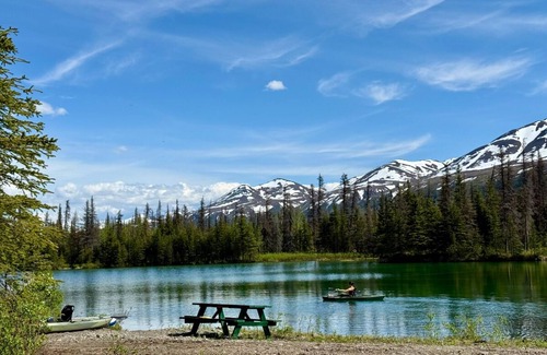 Discover a serene retreat at our newly built lakefront cabin with a cozy loft, nestled amidst breathtaking mountain views. Just 20 miles south of Denali National Park, this peaceful getaway is surrounded by pristine nature, offering the perfect escape. Fish for Arctic grayling and rainbow trout are available exclusively to guests in our private lakes. Ideal for 2-3 guests (with the possibility of accommodating 4), this “tiny home” cabin features a full bathroom, shower, and a fully equipped kitchenette to make your stay comfortable and memorable.