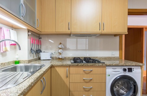 * Fully equipped kitchen with: toaster, coffee machine, dish-washer, large fridge with freezer, stove, oven, immersion blender, kettle and microwave