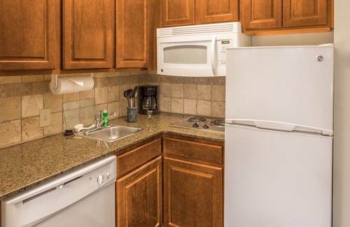 In the KITCHEN you'll find a stove, a microwave, a dishwasher, a refrigerator, cooking utensils, and dishes. Start your day with a cup of coffee, fresh from our in-suite coffee machine. In the morning, enjoy a complimentary breakfast buffet which features a variety of delicious options. You can grill up a meal in the shared BBQ area.