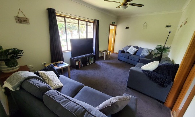 A large driveway & carport can accommodate cars, trailers and boats. Price inc: Linen, towels, Netflix, WiFi and woodCome and enjoy our spacious 3 bedroom holiday house, that sleeps up to 8 comfortably
