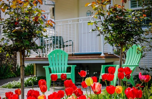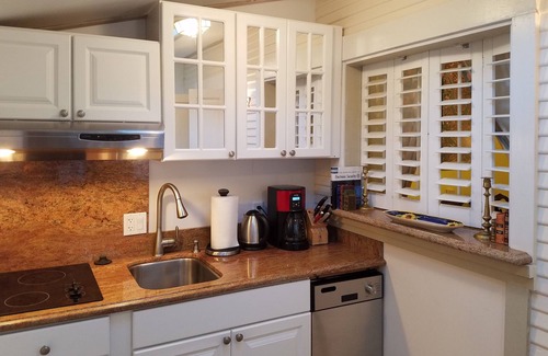 Large two-bedroom duplex cottage with front living room. Includes pullout sofa bed for a single person in the front room plus a king-sized bed in the first bedroom, then a queen bed in the second bedroom. Single bath with historic claw-foot cast-iron tub with shower. Includes flat screen TV., granite-top galley contemporary kitchen complete with dishwasher, microwave, and two-burner ceramic glass cooktop. One block to central main street, however we are on a quiet side street.