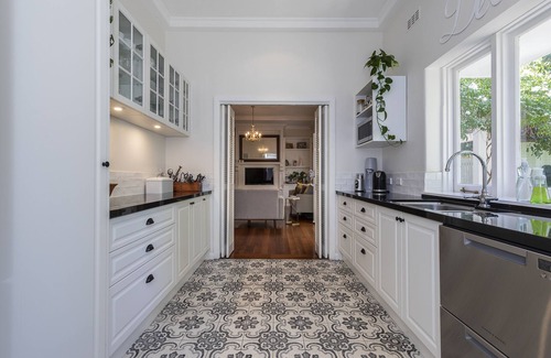 This private residence was designed in the 1930's by West Australia's first female architect Margaret Morison, very much French inspired. The area is surrounded by trees and if lucky you may get a chorus from the local Kookaburra family. The home is split into ground floor living and entertaining areas with fully equipped gourmet kitchen and herb garden at your doorstep. Upstairs is the private master bedroom with ensuite and a separate single bedroom and bathroom across the hall. The second double bedroom and ensuite is self contained in a spacious loft with study desk and its own private entrance. There's great WiFi access at both levels, the main office desk has a network printer, large monitor and streaming entertainment services are available on a large TV in the lounge.