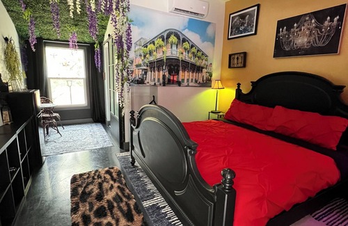 This unique hotel room has a King Victorian bed and transports you to a French Quarter garden in New Orleans.