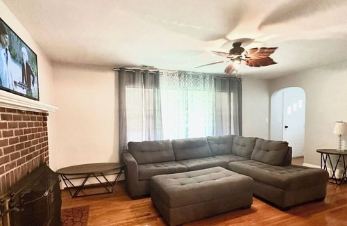 Fresh and clean 3 bedroom 1 bath home good for families. The kitchen is great for making home cooked meals, is equipped with essentials, a keurig and a microwave. Each bedroom is equipped with a TV. On a nice day or night you may enjoy our Outdoor space the yard is big enough to play football.