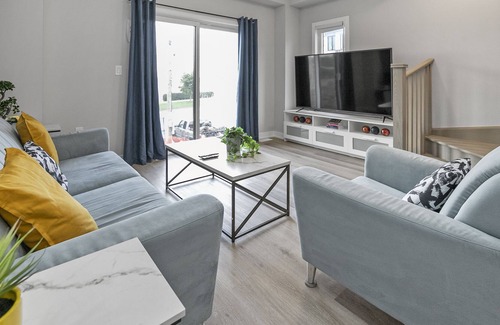Bright, glittering, corner townhouse unit comes complete with high end finishes and equipped with all the necessities. The clean, modern feel makes this the perfect place to relax, work and explore. Relax with multiple in-house streaming services and find the perfect movie for movie night or explore the city's family friendly activities and trendy nightlife. Close to the highway, and with Walmart a short walk away, your home away from home awaits you!
