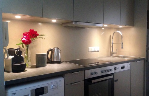 This is a newly renovated apartment (45 square meters) with 2 sleeping rooms, a small dining room with a smart TV, kitchen, bathroom and toilet. Both rooms have a double box bed (160X200cm). A complete kitchen with all the appliances one might need such as dishwasher, washing machine, refrigerator with freezer, stove, oven, microwave, water cooker and a Nespresso coffee machine. The atmosphere is clean and light, perfect for a cozy and relaxing time. .