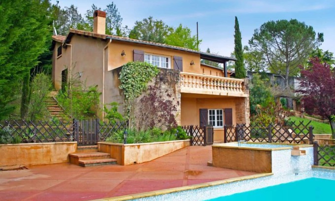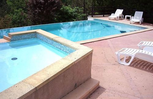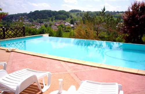 Single-family house "Fromental". 400 m from the centre of Bagnac-sur-Célé, 16 km from the centre of Figeac, 50 km from the centre of Aurillac, on a slope, in the residential district, in a cul-de-sac. Private: terraced garden, 4'000 m2 with trees, swimming pool fenced (5 x 10 m, depth 160 cm, seasonal availability: 15.May. - 15.Sep.). Paddling pool, table tennis. Stepped path (20 steps) to the house. Parking at the house on the premises, single garage. Shop, restaurant 400 m, bus stop "Figeac" 15 km. Tennis 1 km. Nearby attractions: Gouffre de Padirac 50 km, Rocamadour 60 km, Sarlat 100 km, Grottes de Lascaux 130 km. Please note: car recommended.