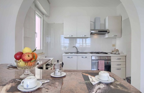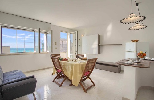The house has a well-furnished seafront balcony from which you can observe the sea and the entire square below the house. Inside there is a large and bright living room with sofa, TV and a small kitchen with oven, equipped with every utensil. From here, sitting comfortably on the sofa, you can enjoy a unique view of the sea and the surrounding beach. The sleeping area has two bedrooms, one double and the other with a double bed, this one very spacious. Finally, a bathroom complete with shower and washing machine.