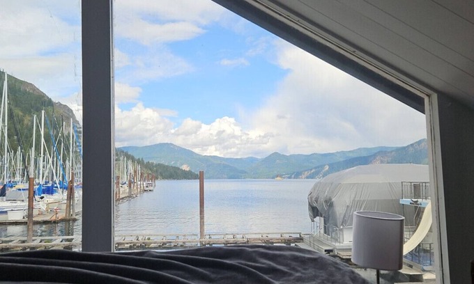Take a break from life by visiting our freshly remodeled floating home on beautiful Lake Pend Orielle! Watch the boats sail through your front door, or better yet, from your patio chairs while grilling on the BBQ or socializing around your firepit. Have your own boat? Even better, the property has a built in BOAT GARAGE! Two bedrooms with two bathrooms keep privacy if two couples are traveling, and the couch folds out to sleep guests #5 and 6 if needed. Enjoy your stay, you won't want to leave!