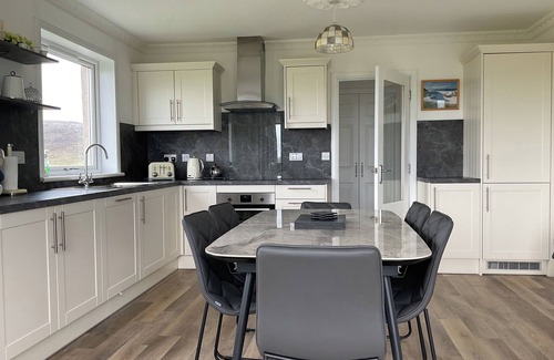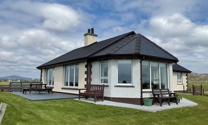 Amenities: Oil central heating with woodburning stove. Electric oven, grill and hob, microwave, fridge/freezer, washing machine, tumble dryer, dishwasher. TV with Freeview, WiFi. Fuel, power and starter pack of logs inc. in rent. Bed linen and towels inc. in rent. Travel cot. Off-road parking. Gardens to all sides with lawns and furniture. Pet-friendly. Sorry, no smoking. Shop 4.3 miles, pub 0.5 miles. Note: There is a payphone on the property. Note: Though electricity is included in the rent, electric for charging cars is not included in the rental. Note: Please bring own linen for travel cot. Note: Please bear in mind that this property is located on an isle and therefore only accessible by plane or ferry. Please note there will be no tumble dryer available from Nov 2025