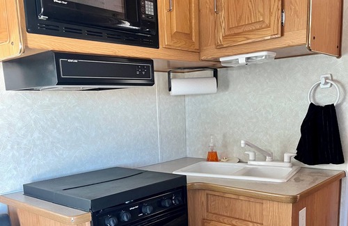 Fully equipped camp trailer is located in Meeker. Fully equipped camp trailer provides accommodation, featuring Wellness Facilities, Fireplace/Heating, Child Friendly, among other amenities. This House features Wellness Facilities, Fireplace/Heating, Child Friendly, to make your stay a comfortable one.