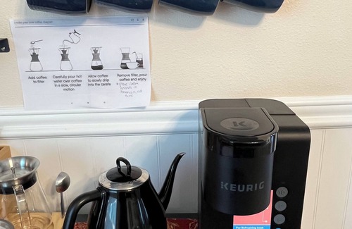 This Klamath Falls house with nature theme boasts 2 inviting bedrooms, featuring 1 queen bed and 1 full bed. With amenities like pour over coffee or K-cups,AC, Roku TV, Full kitchen and WiFi, guests will feel right at home. The 2 bathrooms also come equipped with soap and shampoo for added convenience. You're sure to make fantastic memories with a stay at our place.