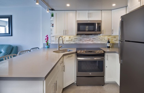 For your convenience and enjoyment, a Keurig coffee maker, toaster, rice cooker, iron and ironing board, and a hair dryer are provided. Coin operated laundry facilities are located just down the hall from the unit. *Due to COVID-19, more stringent cleaning regulations are in place. Housekeeping will no longer leave any form of food item, including Keurig pods, in the kitchen. Thank you for your understanding.