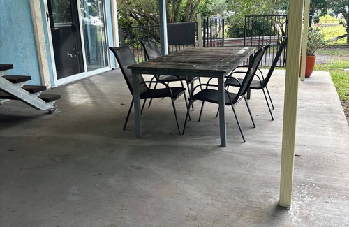 Tree filled property bordering Jardine park with plenty of birds and tranquil view across the park. Secure and self contained unit with full kitchen and bathroom and queen bed. Close to Wandal shopping area, Showgrounds, airport and hospital. Off street parking