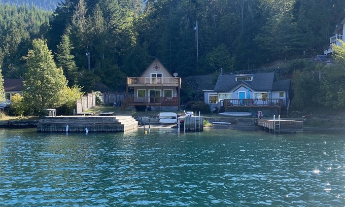 Close to the Olympic Nation Park and all of its benefit’s is nestled this great cabin! It’s located on the point of Lake Sutherland which gives all day sun. Our cabin has 2 bedrooms which sleeps 6 (Master has a king bed and Bedroom 2 has 2 queen beds and living area also) on the upper floor, along with a half bath. The main level has a full bath, living room, dining room, kitchen and laundry room. The outside porch and patio face the lake, so you miss nothing. Plenty of seating for everyone. There are 2 private docks on beach-level property! While we are family friendly, please know not all is child proof.