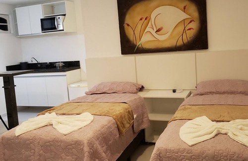 Fully furnished flats in a prime location in the city of Serra Talhada Fr. Lofty with full kitchen with fridge, cooker, pots, glasses and dishes. Room with double bed, sheets, towels, duvet, we provide auxiliary beds on demand. Sky television, wifi. Air-conditioned room with blackout / curtain. We have closed parking, monitored by security cameras.