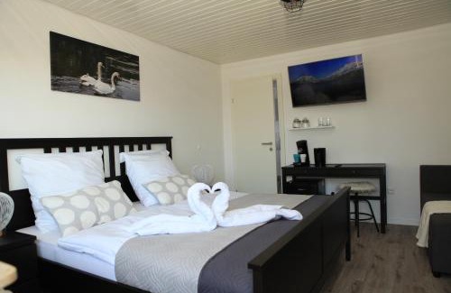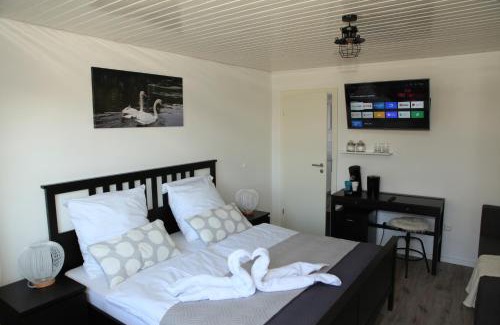 Gästehaus zum Rhein offers accommodations in Rheinhausen, 2.7 miles from Europa-Park and 19 miles from Messe Freiburg. This property offers access to a balcony, free private parking, and free Wifi. The apartment has private entrance. At the apartment complex, the units have a desk, a flat-screen TV, a private bathroom, bed linen, and towels. The rooms have a coffee machine, while some rooms also offer a fully equipped kitchen with a dishwasher, an oven, and a microwave. At the apartment complex, the units include a seating area. Freiburg Cathedral is 21 miles from the apartment, while Freiburg Central Station is 22 miles from the property.
