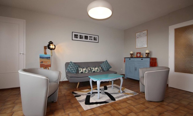Passionate about wine and travel, Jean-Baptiste and Orlady welcome you to a comfortable apartment in a luxury seventies residence, well-inhabited, quiet and perfectly maintained, with permanent concierge. Residential area in the heart of the city (A6 quickly and easily accessible / exit 2 km) adjacent to the center of the famous Burgundy river & wine city nestled on the banks of the Saône (10 minutes on foot / 100m bus stop). Functional apartment of very good comfort. Bright and spacious. Warm contemporary cachet mixing "ethnic" touches (many objects brought back from travel), Nordic influences and a "shabby chic" spirit. Cocooning, zen and very cozy atmosphere. Very charming. Quality equipment. Pleasant balcony-terrace sheltered in loggia having a beautiful clear view on the city and the mountains of Chalonnais on the horizon. City of "Art and History" ideally located between nature, countryside and vineyards, at the same time, cultural, festive and gastronomic, cradle of Nicéphore Niépce inventor of photography (world famous museum to visit), Chalon-sur -Saône has a center with a very rich historical heritage (half-timbered houses, towers and turrets, fortifications and bastions, Saint Vincent cathedral, former episcopal palace, Italian theater "the Piccolo", chapel of the Île St-Laurent hospital ...) as well as all shops and services and offers a level of quality cultural and leisure facilities. Composition: Apartment on the 5th floor of a residence with lift. Wireless. Urban heating. Kitchen, living room, 2 bedrooms (1 double bed of 140x190cm - 2 single beds of 90x190cm). Shower room (large shower 160x75cm), separate WC. Sheltered balcony-terrace with garden furniture (loggia). Easy parking on site (double parking). Private bicycle room. Bike rental. Shops and services within 1km. Greenway 1km. Creusot TGV station 33km. Golf 6km.