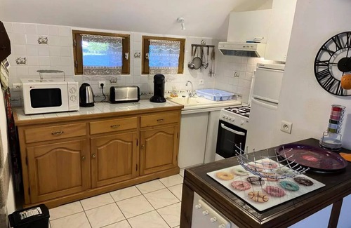 Accommodation: Traditional country stone house, designed for 2 to 4 people.Ideally located in Xaintrie (near Argentat sur Dordogne), adjoining the owner's residence. Going down three steps, you will discover a stay that incorporates a stone scumbag, preserved to preserve its charm of old. This space also includes a kitchenette, a living room, with a wood stove. A separate toilet with hand wash. Upstairs, a bedroom with a bed in 140 cm, with a bathroom (shower and toilet). The mezzanine offers two extra beds. Air conditioning is installed in the room, but its use is chargeable; It is advisable to inquire with the owner on site. A first burst in the wood stove is offered free of charge. Some options are not included in the price (supplement to be foreseen) A traditional stone house, surmounted by a lauze roof, is distinguished by its stencil and staircase, some of which is made of wood and the other made of stone, carefully preserved. Located in Xaintrie, this region nests between the Bas Limousin, Auvergne and Quercy, on a plateau marked by deep gorges dug by the course of three rivers: the Maronne, the Cère and the Dordogne. This place offers a quality of rural life, as well as a traditional and architectural heritage of exceptional richness. Price Does not include: Electricity up to 8kWh/day (beyond charging)Household package 50€HeatingWoodSheets 10€/pair/stayToilet linen 8€/pers/pers/stay