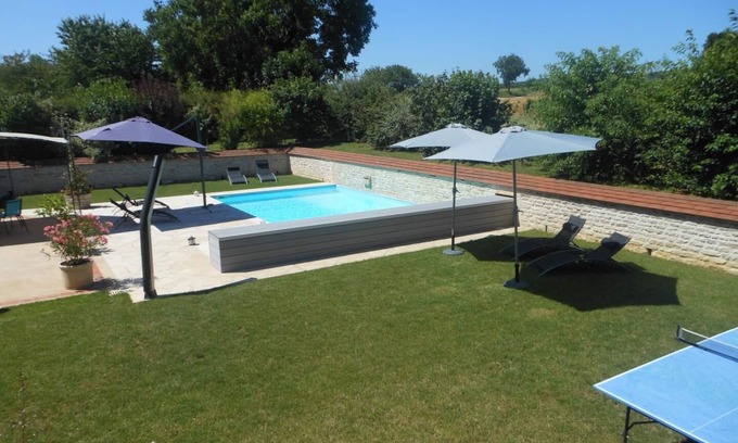 Yes, this Vire house has a swimming pool. Check the Facility Overview section for details about the pool and other available facilities.