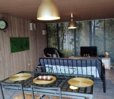 Food & DrinkTea/Coffee maker, Chocolate/CookiesBathroomShower, Toilet, Bathtub or shower, Toilet paper, Private bathroom, Towels, Shampoo, Free toiletries, Body soapMedia & TechnologyFlat-screen TV, TVKitchenWine glasses, Cleaning products, Oven, Kitchenware, Electric kettle, Coffee machine, Stovetop, Dining table, Kitchen, Microwave, RefrigeratorLiving AreaDining area, Sitting areaGeneralHardwood or parquet floors, Smoke Alarm, Heating, Private entrance, Fire extinguisher, Trash cansViewQuiet street view, Garden view, View, Inner courtyard viewBedroomWardrobe or closet, Childrens' cribs, LinensOutdoorsOutdoor furniture, Barbecue, Outdoor dining area, TerraceAccessibilityEntire unit located on ground floorBuilding CharacteristicsDetached, Private apartment in buildingEntertainment & Family ServicesBoard games/puzzles, Books, DVDs or music for childrenRoom AmenitiesSocket near the bed, Feather pillow, Sofa bedCleanliness & disinfectionHand sanitizer |