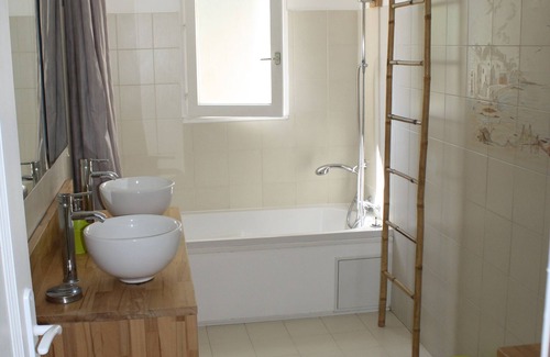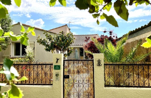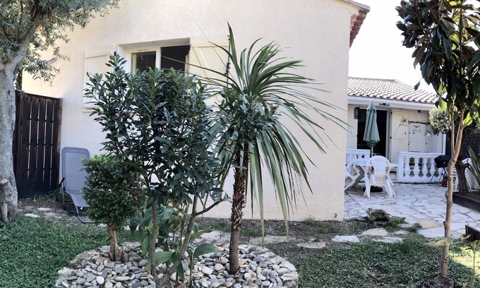 The private shaded garden of 100 m² is quiet, in a dead end and not overlooked, with BBQ, deckchairs, large parasol and outdoor table. The house is cool even in strong heat, the renovation is recent and the decoration done with care.