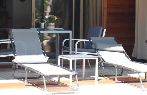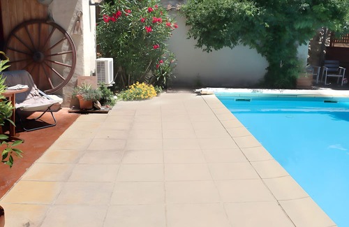 The holiday home is a 50 m² vintage "Art Deco" loft on the ground floor, with a large terrace overlooking the pool.