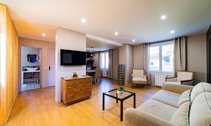 Close to rock climbing, motor boating, and more, this pet-friendly vacation home brings it all within reach. With the property's convenient covered onsite parking, you'll be ready to make the quick 4-minute drive to Domaine Roy or the 5-minute drive to Domaine Mazilly Père & Fils.