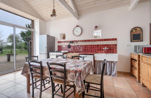 Gîte Les Arcades offers accommodations in Saint-Gildas-des-Bois, 29 miles from La Baule-Escoublac Train Station and 30 miles from Atlantia Convention Center, La Baule. The 1-star vacation home is 21 miles from The Heritage Museum Ecomusée. Free Wifi is available throughout the property and Saint-Nazaire Train Station is 20 miles away. The vacation home features 5 bedrooms, a fully equipped kitchen with a dishwasher and an oven, a washing machine, and 4 bathrooms. A TV is provided. The accommodation has a fireplace. Guests can also relax in the garden. La Baule Casino is 30 miles from Gîte Les Arcades. The nearest airport is Nantes Atlantique Airport, 37 miles from the accommodation.