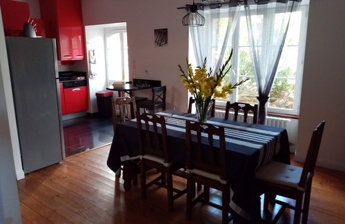 house (Gîte) in the heart of St Jean Pied de Port (village classified among "The Most Villages of France" in June 2016) - 8 rooms - 110 m2 - 6 people - equipped kitchen, dining room, living room, 2 bathrooms , 2 wc, 4 bedrooms, large outdoor terrace, courtyard, parking, garage, large garden at the back of the house, WIFI - this duplex of great comfort is 50 meters from the pedestrian and commercial streets of the city, facing the citadel Vauban, on the way to St Jacques de Compostela, ideally located for mountain walks, 25 km from Iraty forest, 50 km from the beaches of the Basque coast, and 10 minutes from the Spanish ventas.