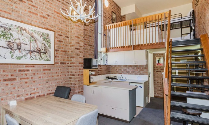 This cosy loft located in the heart of Jindabyne offers a double bed and single bunks in the upper level sleeping up to 5 people. There is a bathroom with bathtub and kitchenette provided with all the basic essentials. This apartment offers the security of being a part of a resort which makes for a comfortable stay.