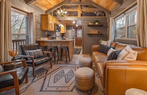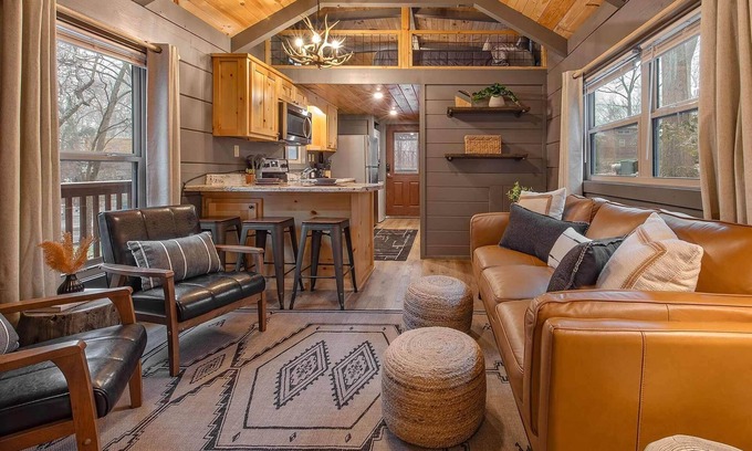 Gabriele Cabin at Wauhatchie Woodlands is a cozy, tiny cabin located just 5 minutes from downtown Chattanooga. It offers access to a private hot tub, a furnished back deck, and a covered front deck with a charcoal grill. In addition, there is a shared fire pit for you to enjoy during your stay. The natural surroundings are incredibly charming and memorable. With a main bedroom and a sleeping loft, Gabriele can comfortably accommodate up to 4 guests.