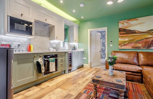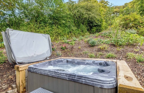 Bedroom: Super Kingsize (6ft) Bed Ensuite: Cubicle Shower, Heated Towel Rail, Toilet. Electric underfloor heating, electricity, bed linen, towels and Wi-Fi included. Initial logs for wood burner included. Welcome pack. . Courtyard. Hot tub for 4 (private). Private parking for 2 cars. No smoking. Please note: There is a moderately steep path down from the car park to the property. Sorry, no children under the age of 18 years.. Designed with relaxation in mind, Gadley Cottage is the perfect couples’ retreat. Step into the spacious open plan living space and feel totally at home with a comfy living area and stunning interior design along with a cosy wood burner to keep you warm and toasty on those chillier evenings.