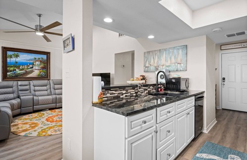 After a long day on the water, retreat to the bedroom, where you will find the luxuries of home. The primary bedroom king-bed is the perfect place to have the sweetest dreams with fresh and comfy linens and a TV for late-night shows. In addition, you will find an ensuite bathroom with granite countertops and a walk-in shower. A second and third bedroom can be located down the hall for more company and family. The second bedroom holds a king-size bed, and the third bedroom has a queen-size bed and a TV as well. An additional full-size bathroom can be found with a combination shower/tub. A twin roll-away can be found in the closet. Coin laundry can also be found in the community to freshen your clothes and beach towels.